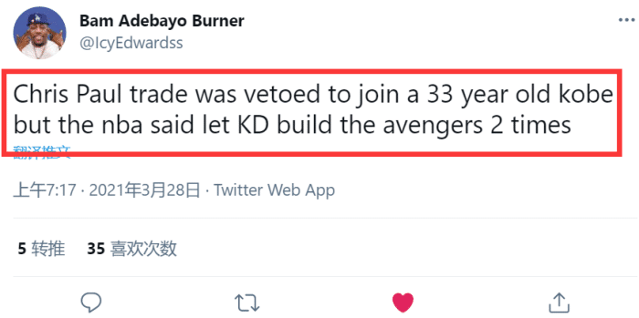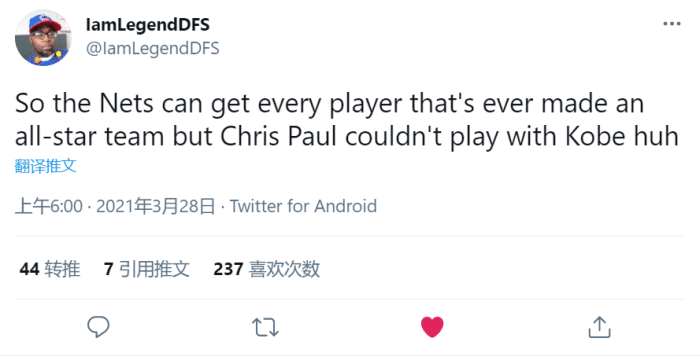 “篮网可以得到每一个曾入选过全明星的球员,但保罗不允许和科比打球,哈哈!”