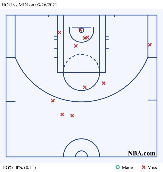 前三节表现还不错的伍德,在末节也屡投不中。火箭跟队记者给出伍德和沃尔的末节投篮分布图,沃尔6投0中,伍德5投0中,两人合计11投0中,火箭输球也就不足为奇了。