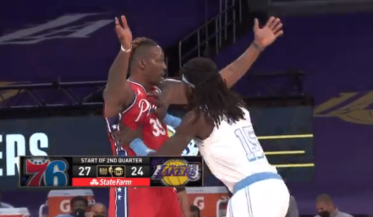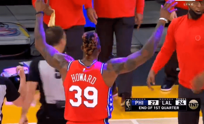霍华德首次身披费城战袍重返斯台普斯球馆,赛前开心地领取总冠军戒指,可仅仅替补上场仅打6分钟便连吃两T被驱逐离场,对于这一次火药味十足的冲突,不知你有什么想说的呢?