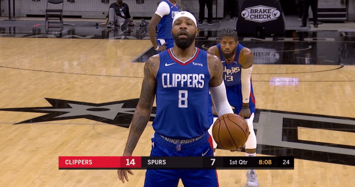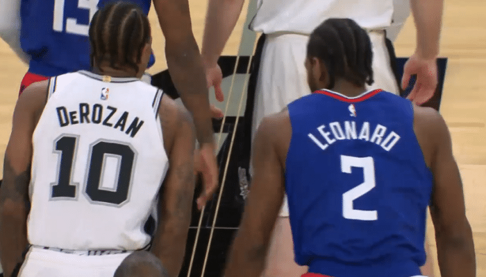 比赛正式开打后,小卡和德罗赞站在中线附近的同框背影让人想起当年的大交易,小卡开场就抢断,然后反击强硬上篮得分,打进本场第一个进球,此时AT&T球馆的现场球迷开始嘘他;小卡带队吹响进攻号角,小莫里斯手感滚烫,接连投进三记三分球,甚至打成不讲理3+1(罚球没进)。