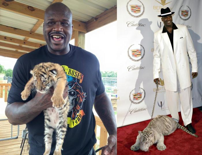 除了养蟒蛇,蜥蜴、猪、骆驼都成为了NBA球星的选择,但是其中最为拉风的还要属于奥尼尔的宠物——两支白虎。