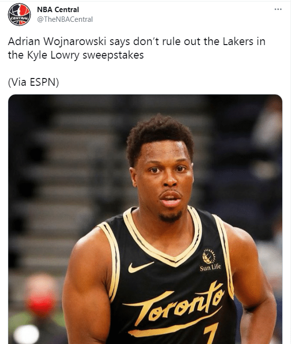 来源:直播车03-25 15:38直播车3月25日讯 詹姆斯伤了之后,在很多媒体和球迷的眼中,湖人的末日来了,似乎湖人队不立即、马上弄出来几笔交易,这支球队就可以坐地分行李了。3月25日,关于湖人队的另一项重磅消息传来,著名篮球记者WOJ在采访中表示,湖人将成为洛瑞交易中的领跑者。