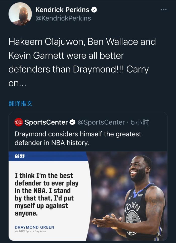 格林自称历史最佳防守球员?帕金斯怒怼:大梦大本加内特都比你强!