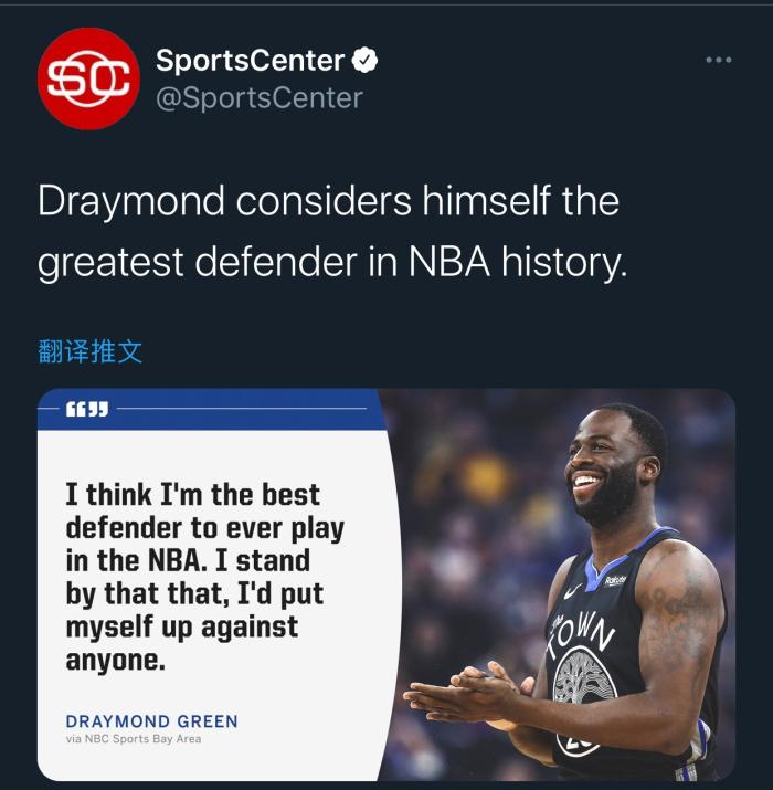 来源:直播车03-24 19:38直播车3月24日讯 星期三,金州勇士队前锋德雷蒙德-格林在接受播客媒体DUBS TALK采访时,对媒体人Grant Liffmann和Kendra Andrews表示,“我是NBA历史上最出色的防守者,100%的确定。”