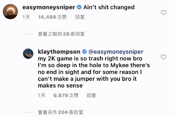 汤普森和杜兰特社媒互动:我在2K里用你投不进球,这完全没道理啊!