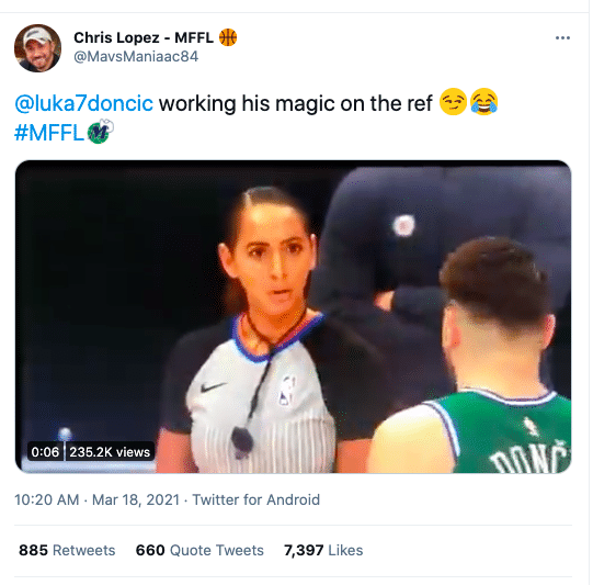 从严肃到初恋般笑容,东契奇到底和女裁判说了什么?谐音梗真好用