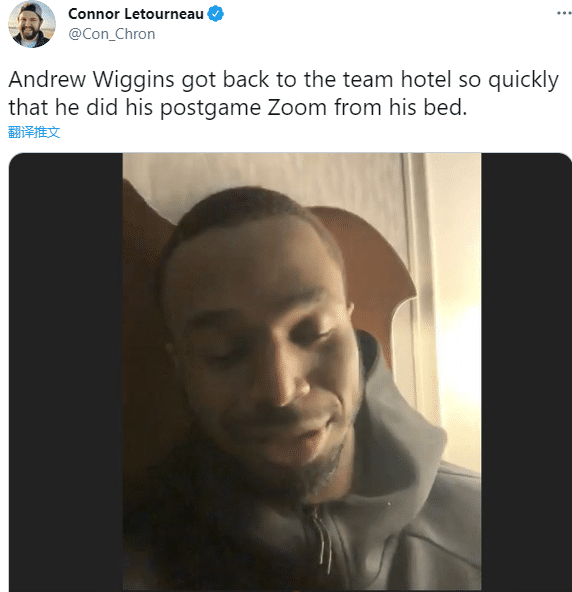 维金斯打出勇士生涯最佳一战,而且是在库里缺席比赛的情况带队赢球,14年状元郎终于不装了,赢球之后嘴哥露出纯真而又温暖的笑容;不过维金斯貌似累坏了,据勇士记者Connor Letourneau报道,维金斯早早返回酒店并且躺在床上接受赛后zoom采访,估计维金斯疯狂输出导致过度消耗,还是躺着舒服。