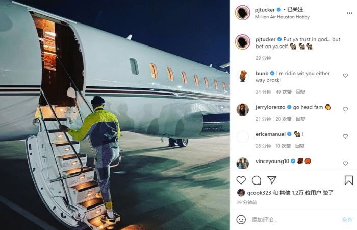 此前塔克晒出在休斯敦的登机照,离开火箭飞往密尔沃基雄鹿;对此球迷调侃塔克装了一飞机的球鞋;接下来,塔克将会身披雄鹿战袍,成为字母哥冲击总冠军的一大帮手。