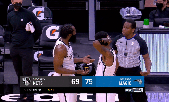 哈登4犯引争议!篮网挑战失败,哈登摊手找裁判理论+欧文抱头太无奈
