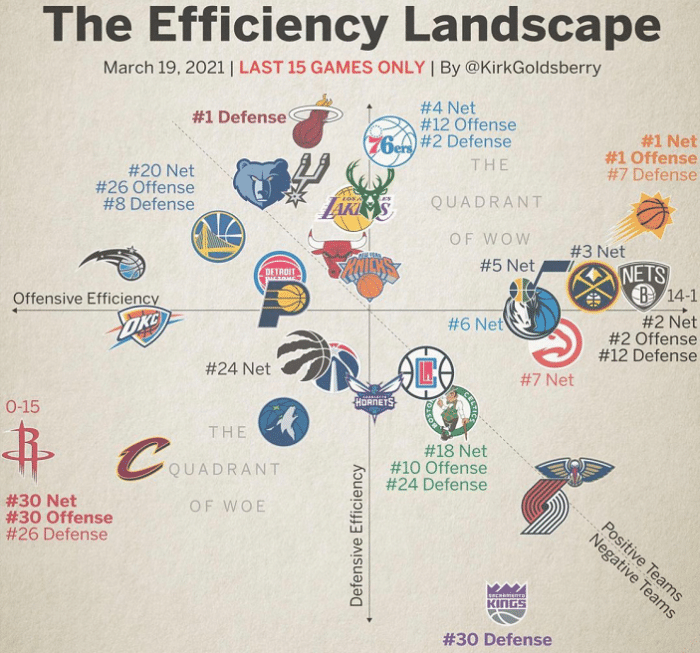 近15日攻防效率值出炉!太阳第一,篮网防守升至第12,火箭垫底