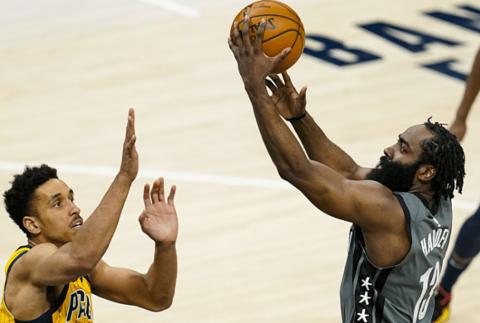 只用27场比赛,哈登创篮网54年纪录,40+三双成历史第三人