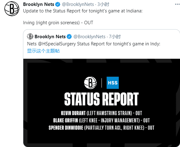 来源:直播车03-18 16:32直播车3月18日讯 篮网官宣对阵步行者的伤病报告,杜兰特、格里芬和丁威迪因伤继续缺席比赛,欧文也受伤了,因右侧腹股沟酸痛而无法出战,这意味着哈登又要单核带队了;另外杜兰特复查结果也出炉了。