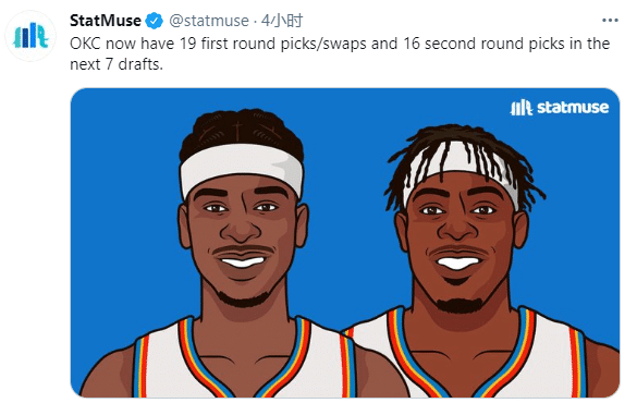 如今雷霆也宣布伦纳德离队,恐怕他已经拿完了NBA生涯的最后一份合同,你觉得还有球队愿意要他吗?雷霆愿意交易的最大原因是用阿里扎换选秀权,目前雷霆已经囤积了近7年19个首轮选秀权/首轮互换权,还有16个次轮选秀权。