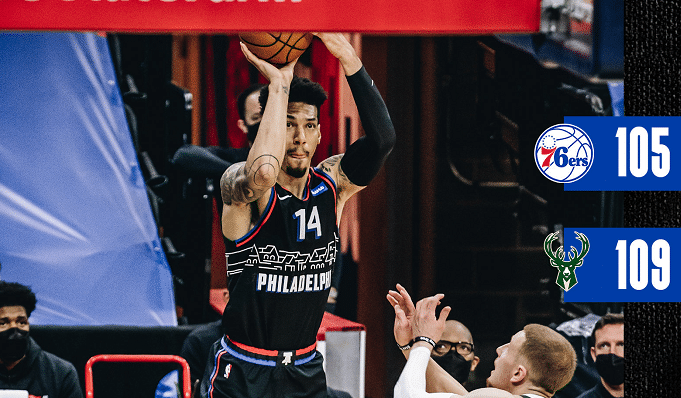 今天的比赛费城上半场大比分领先的情况下崩盘,险些被雄鹿常规时间内击败,好在最后一分钟爆发将比赛拖入到了加时赛,进入到加时赛费城还是遗憾的输了球,吃到赛季第13场败仗。另一边篮网在没有欧文、杜兰特和格里芬的情况下,依靠着哈登40+三双好戏,完成落后16分的大逆转,这样篮网的战绩也追平了非常,可惜因为受限于同区内交战纪录未能登上东部榜首的位置。