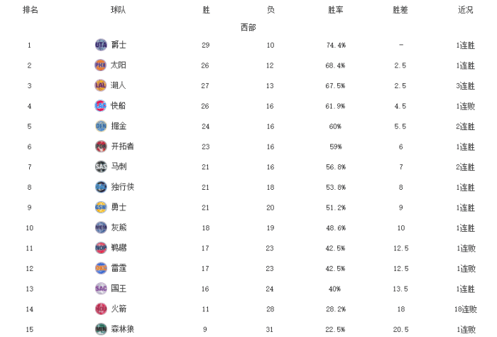 爵士领跑西部;