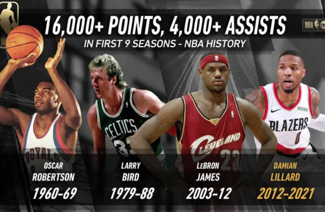 根据统计,利拉德成为现役第12位得分超过16000分的球员,在他的身前是詹姆斯、安东尼、杜兰特、哈登、韦少、阿尔德里奇、保罗、霍华德、库里、德罗赞和盖伊。按照利拉德本赛季的得分效率,他甚至有希望在赛季结束时,冲击17000分大关。此外,利拉德成为大O罗伯特森、拉里伯德和詹姆斯之后,史上第4位在前9个赛季打成16000+4000助的球员,利拉德目前的助攻数,已经超过了4300个。