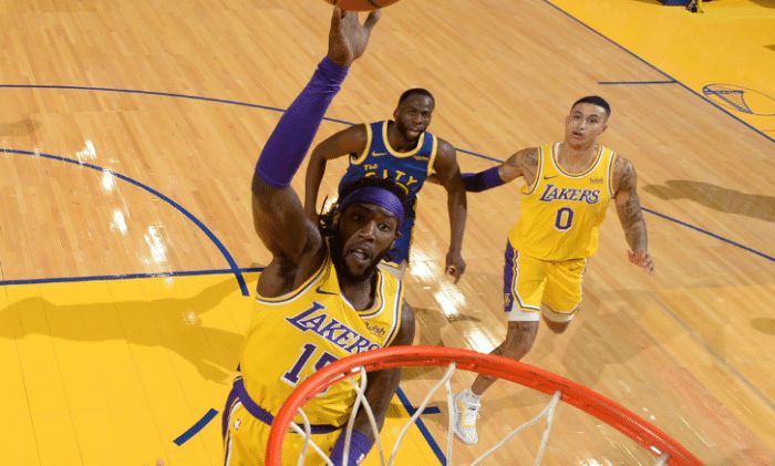 本场比赛,库里首节便火力全开,单节10中6独得15分。但他的队友发挥却不太给力,首节结束,勇士26-29落后3分。来到第二节,湖人在詹姆斯之外,哈雷尔开始爆发,他单节掠下15分半场独得19分,与库里形成了对飚。但勇士其他球员的表现实在糟糕,半场结束勇士已经50-65落后了15分。在巨大的劣势面前,勇士也基本失去了抵抗的意志,三节战罢他们已经落后20分,比赛也失去悬念。