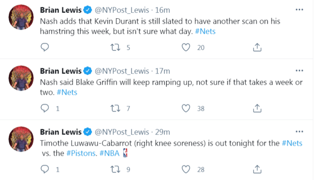 除了格里芬,纳什还谈到了杜兰特和丁威迪的现状。纳什表示,杜兰特本周会接受一次伤势复查,但目前还不清楚具体是哪一天,等到检查结果出来,官方会公布报告。