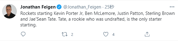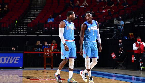 火箭出战阵容——小波特(19年首轮30号秀)、泰特、斯特林-布朗(次轮16号秀)、贾斯汀-帕顿(17年首轮16号秀)、小肯扬-马丁(20年次轮22号秀)、安东尼-兰姆、麦克勒莫(首轮7号秀)和梅森-琼斯