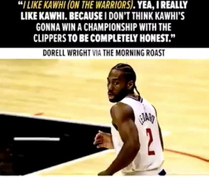 他表示“我乐于看到勇士得到卡哇伊。我很中意他出现在勇士,因为说实在的,我不认为小卡可以在快船赢得总冠军。”这句话就颇有意思了,快船的夺冠希望还不如现在的勇士吗?当然了,他不是现在对比两队的实力,而是单纯地对快船的赢球文化和夺冠前景不看好!