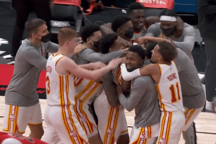 来源:直播车03-12 18:51直播车讯北京时间3月12日,NBA赛场诞生绝杀!在老鹰对阵猛龙的比赛中,斯内尔在比赛最后一刻接到特雷杨的传球,命中了压哨三分球绝杀!最终,老鹰121-120击败了猛龙,拿下3连胜!而在斯内尔命中绝杀之后,老鹰全队也是疯狂庆祝。