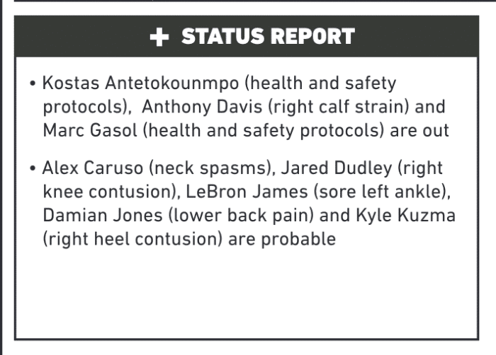 湖人官宣伤病报告!6人有伤2人被隔离,浓眉伤停詹皇养伤9天仍未痊愈