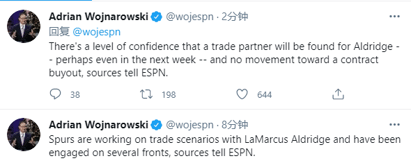 马刺已经正式交易阿德,这是马刺的首选方案,不过要是马刺在北京时间3月26日的交易截止日前无法做成交易,之后他们大概就会考虑买断阿德的合同。