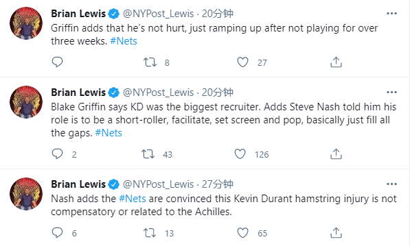 此前格里芬和纳什坐在布鲁克林街头的小桌子旁边会面,这画面很接地气,就差一盘烤串和一些啤酒;如今格里芬已经和哈登、小乔丹等新队友合练;不过篮网官宣格里芬因伤缺席比赛,而格里芬本人则是直言自己没有受伤,纳什透露由于他已经三周没打比赛,篮网对他保持谨慎的态度。