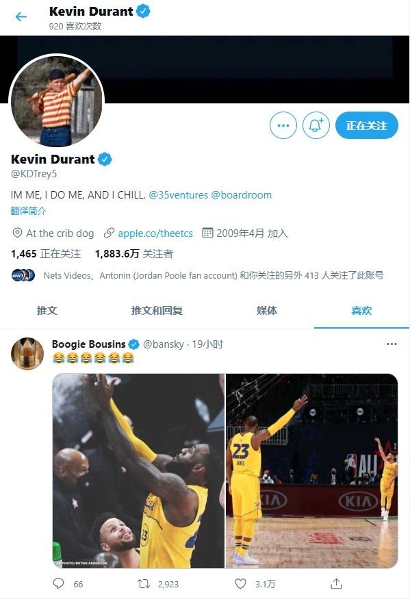 另外值得一提的,一件有趣的事情,网友晒出了库里和詹姆斯在赛场上的一些有趣的合照,第一张是詹姆斯撒镁粉时库里探头搞怪,第二张则是库里三分出手之后詹姆斯后场提前庆祝。因伤缺阵未能出战的杜兰特点赞了,球迷调侃“若是阿杜去打全明星,没准还能招募一位巨头过来打球呢”
