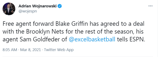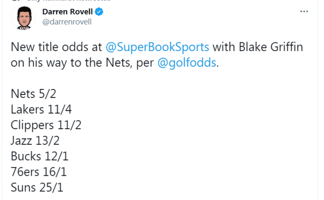 格里芬签约细节曝光!篮网还剩两个名额,夺冠赔率力压湖人排第一