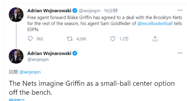 此前,根据报道格里芬在被活塞买断之后,很多争冠级别球队都对格里芬表达了兴趣,包括湖人、篮网、雄鹿和快船等强队。不过,格里芬更倾向于加盟篮网。稍早前,Shams报道格里芬在度过澄清期后,格里芬预计将和篮网签约。