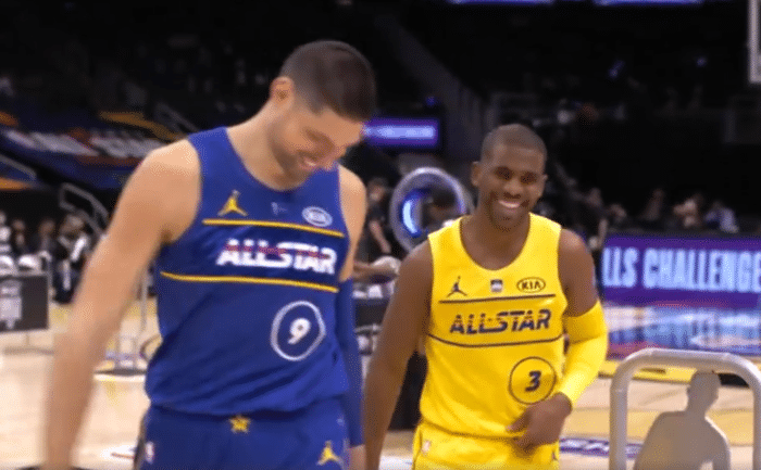 第二轮的比赛东契奇对阵萨博尼斯,东契奇明显的没有准备好,长裤和长袖上阵,传球阶段萨博尼斯一次成功,东契奇这边传了三次才成功,东契奇上篮的时候,萨博尼斯就已经在投三分了,萨博尼斯的手感十分不错,第一次三分投射就命中了,最终他以巨大的优势击败东契奇晋级,武切维奇对阵保罗,刚开始两人并驾齐驱,但是上篮的时候保罗没有中,随后两人来到了三分线,在经过多次打铁后,武切维奇率先命中晋级决赛。在全明星技巧挑战赛上,上篮不见是很罕见的,但是这在保罗身上却发生了多次了,有球迷调侃道:全明星挑战赛篮板排行榜保罗遥遥领先,保罗成功卫冕篮板王。在过去6年的技巧挑战赛中,4次冠军由内线球员获得。