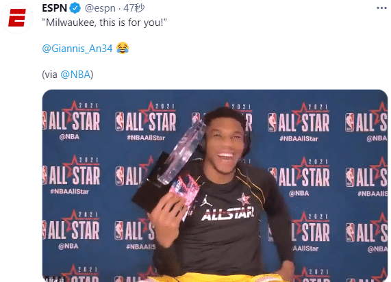 全明星MVP投票出炉!字母哥10-2完爆库里,举奖杯高呼詹皇式口号
