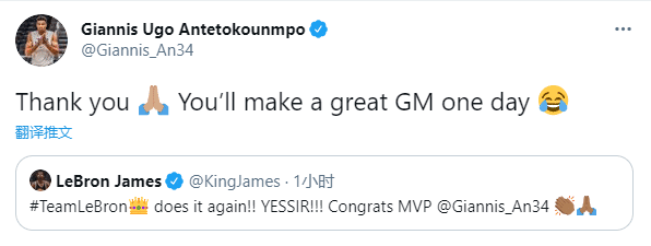 字母哥则是抱着科比-布莱恩特MVP奖杯拍照;他还在社交媒体上晒全家三口合影,以及回应詹姆斯:谢谢你,未来某一天,你会成为一名伟大的总经理。