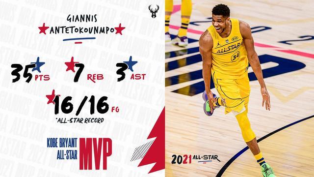 字母哥是幸运的,结果和他期待的一样,字母哥如愿地成为了全明星赛的MVP。本场比赛,字母哥投篮16投16中,连他最不擅长的三分球,都是不可思议的三投三中,字母哥最终创下了以100%的命中率拿到了35分、7篮板、3助攻的纪录。或许是预感到自己有可能会获得全明星赛的MVP,字母哥在比赛结束后就一直抱着篮球不撒手,显然这哥们想A走这颗篮球。