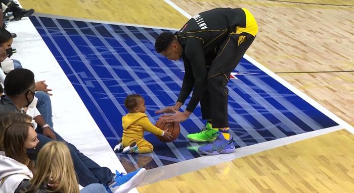 詹姆斯队众球星亮相时,场上出现一点小插曲。