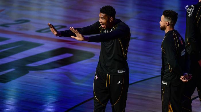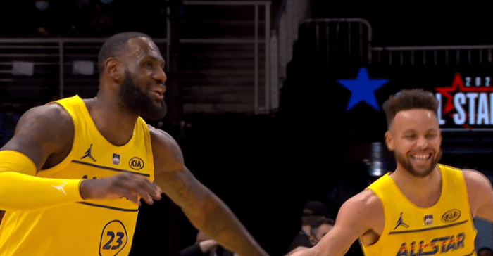 全明星欢乐多!库里吓坏东契奇,詹皇压轴亮相+抛镁粉时萌神搞怪仰视