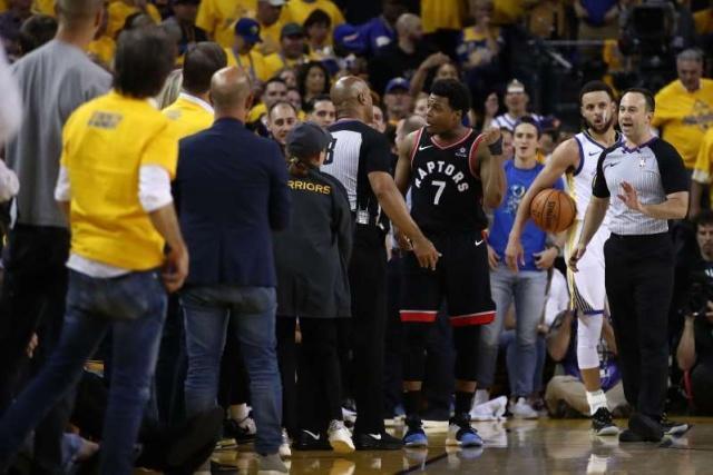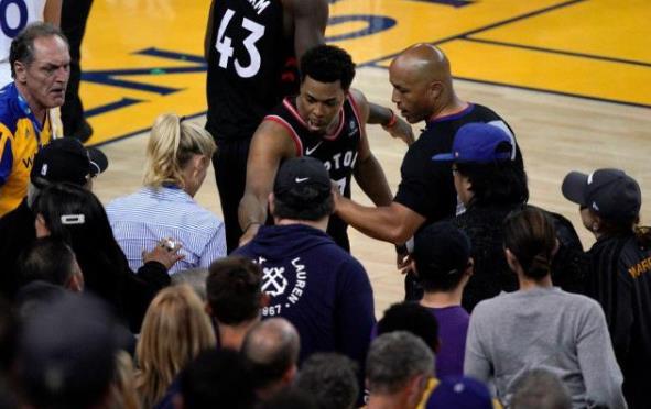 18-19赛季总决赛G3,伦纳德当时所在的猛龙队客场挑战勇士队。比赛中,洛瑞飞身救球摔倒在观众席中,起身后的洛瑞突然和一名中年男子起了冲突,这也让很多球迷感到诧异。通过回放,球迷们很快也找到了答案,原来,洛瑞在摔倒准备起身的时候,一名中年男子推了洛瑞一把,也这是这样的举动才引发了两者的争吵。