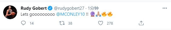 康利的队友也就是全明星球员米切尔第一时间发推,晒一个表情包并且写道:我看到你了康利;戈贝尔则是发推写道:让我们一起加油,康利。