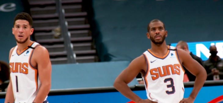 接下来聊聊保罗身边那个最得力的兄弟--德文布克。2015年以13号秀的身份在太阳登陆NBA,布克的得分水平无需多言,单场70分已证明一切。上个赛季复赛他可以场均砍下30.5分,但是太阳依然无缘季后赛,即将步入职业生涯巅峰的他渴望能有一位篮球导师为他指明前方的道路,于是在命运的安排下他遇到了保罗。