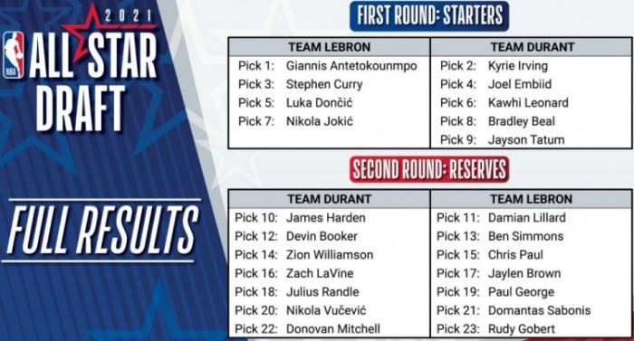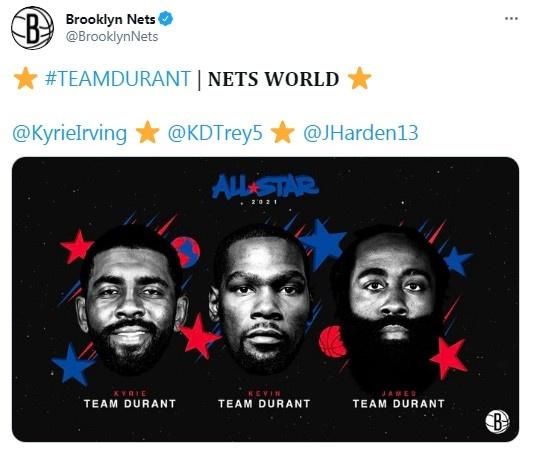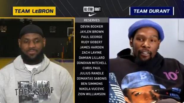 杜兰特这边则是两轮首选都是自己的队友欧文和哈登,如果KD没伤能打得话那就比较有趣了,这就是篮网三巨头同队参加!篮网官方推特写道:“杜兰特队,篮网世界。”