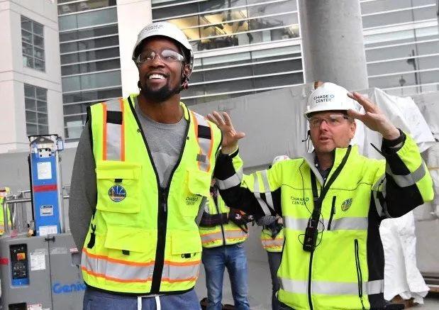 再比如,此前篮网主场一位小球迷在前面大喊“凯文杜兰特”名字的时候,KD立刻回头送给小男孩一个微笑+一个邪魅的眼神。另外此前勇士正在建设大通中心的时候,杜兰特也是穿着施工队的衣服和头盔来现场“视察”活脱脱的民工气质啊!