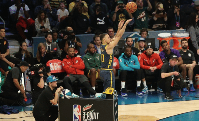 三分球大赛:库里、拉文、布克、米切尔、杰伦-布朗和塔图姆,其中库里和布克都曾经斩获过三分球大赛冠军;