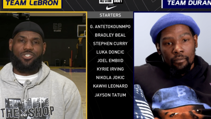 杜兰特队替补:哈登、布克、锡安、拉文、兰德尔、武切维奇、米切尔;