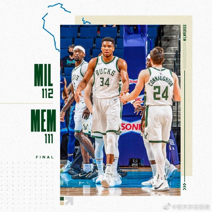 雄鹿112-111击败灰熊 字母哥26+11+8 霍勒迪准绝杀 莫兰特35+6