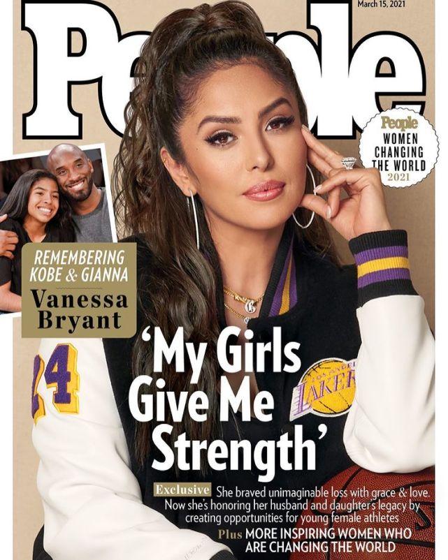 瓦妮莎登上人物杂志封面!身穿湖人外套缅怀科比:女儿们给了我力量