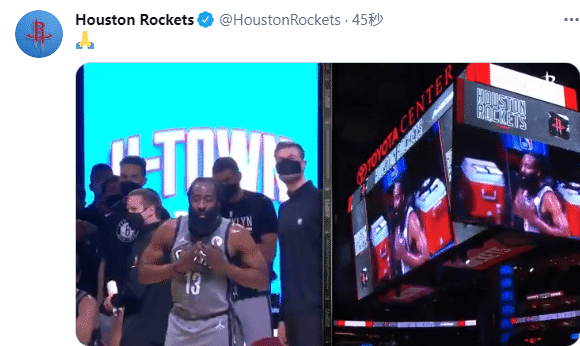 火箭播放致敬视频,哈登一系列回应手势太感人,篮网众队友为他鼓掌