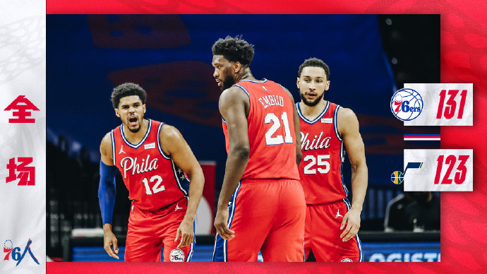 76人131-123击败爵士 恩比德40+19 米切尔33+8+6&遭驱逐