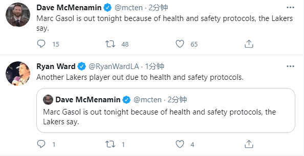 来源:直播车03-03 17:01直播车讯 北京时间3月3日,洛杉矶湖人又有坏消息,据湖人记者Dave McMenamin以及Ryan报道,湖人已经宣布,小加索尔因遵守联盟防疫协议而缺席比赛,这意味着小加已经被强制隔离起来,一般这种情况都要至少被隔离7天;湖人又一主力被隔离,太不幸了。