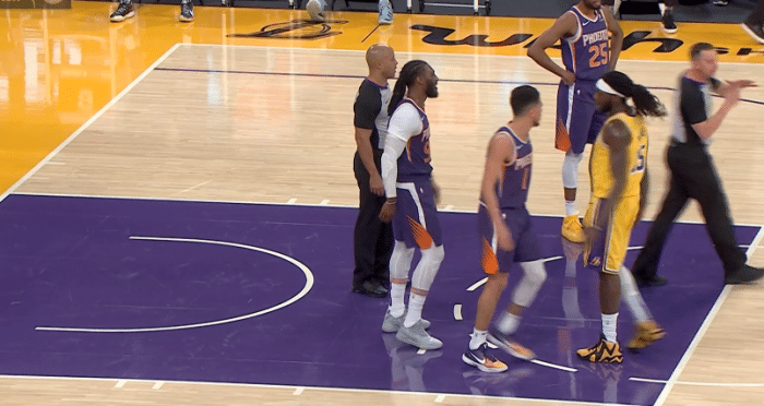 第三节8分15秒,布克持球反击上篮,大莫里斯补防被吹犯规,对于这一次吹罚,詹姆斯和沃格尔都不满判罚,最终他俩吃到技术犯规,保罗执行两次技犯罚球;随后还没打一分钟,7分10秒,布克连续吃到两次技犯被驱逐离场,然后他沮丧离场,因不满喷垃圾话被驱逐,裁判零容忍驱逐布克引热议。